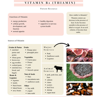 Don't you wish you had a quick reference to brush up on thiamin before seeing your clients or patients? This quick reference will help you organize your thoughts and prove to be a great resource in between appointments. Upon purchase, a high quality pdf file will be available for download. From there, you can turn the file into a print-out, poster, or whatever you would like!